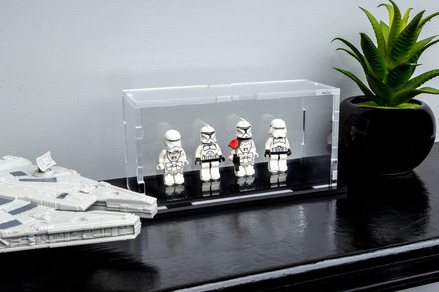 Every product needed to earn its place on the shelf, and on the screen. I developed a consistent photography style that showcased each case alongside the LEGO set it was built for, giving customers a clear sense of scale, quality, and craftsmanship. Custom-printed acrylic backgrounds were designed for each set, turning a functional display case into something worth showing off. From a solo minifig stand to a 40" Millennium Falcon enclosure, every image was built to sell.